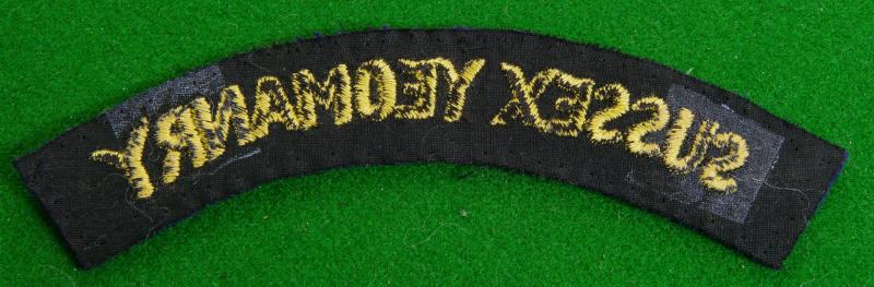 Embroidered in yellow on dark blue shoulder title, " Sussex Yeomanry"