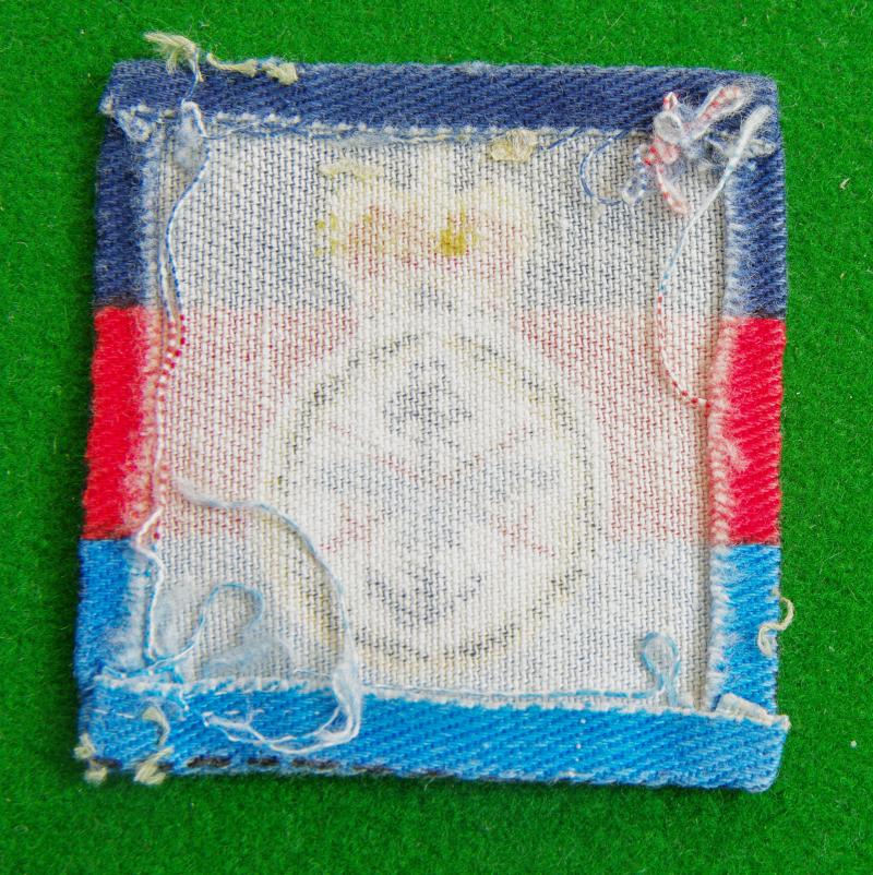 Scarce printed example of the badge of the Combined Services within a black wreath surmounted by the queen's crown on a dark blue, red and light blue background.