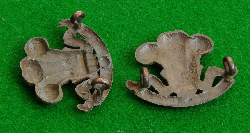 Scarce pair of officers bronze service dress collar badges. The Prince of Wales's plumes above the curved scroll bearing the unique honour, " Fishguard"