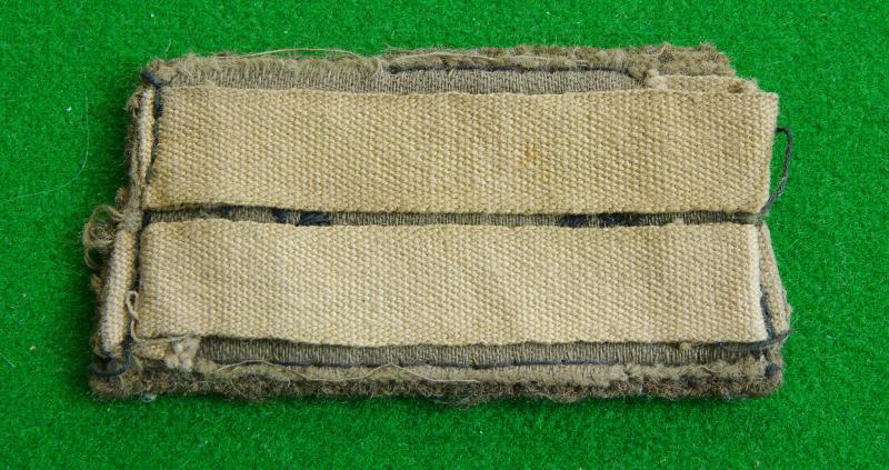 WW II black on khaki shoulder strap slip-on, " Royal / Norfolk" with canvas loops to the reverse.