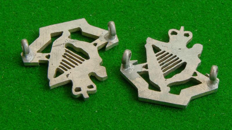 Pair of queen's crown officers silvered collar badges. The crowned Angel Harp above the angular title scroll, " North Irish Horse"