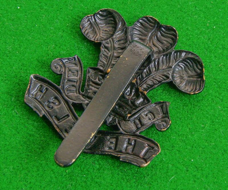 Black-brass cap badge with slider fitting to the reverse worn by the 7th. {Cyclist} Territorial Battalion The Welsh Regiment. The Prince of Wales's plumes above the title scroll, " The Welsh"