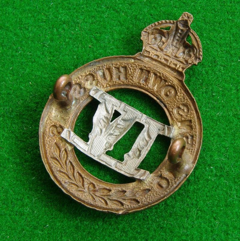 Very scarce king's crown bi / metal cap badge with two loops to the reverse. The roman numeral " IV" to the centre of a crowned circlet bearing the title, " Queen's Own Hussars" {This pattern only worn from 1902-1906}