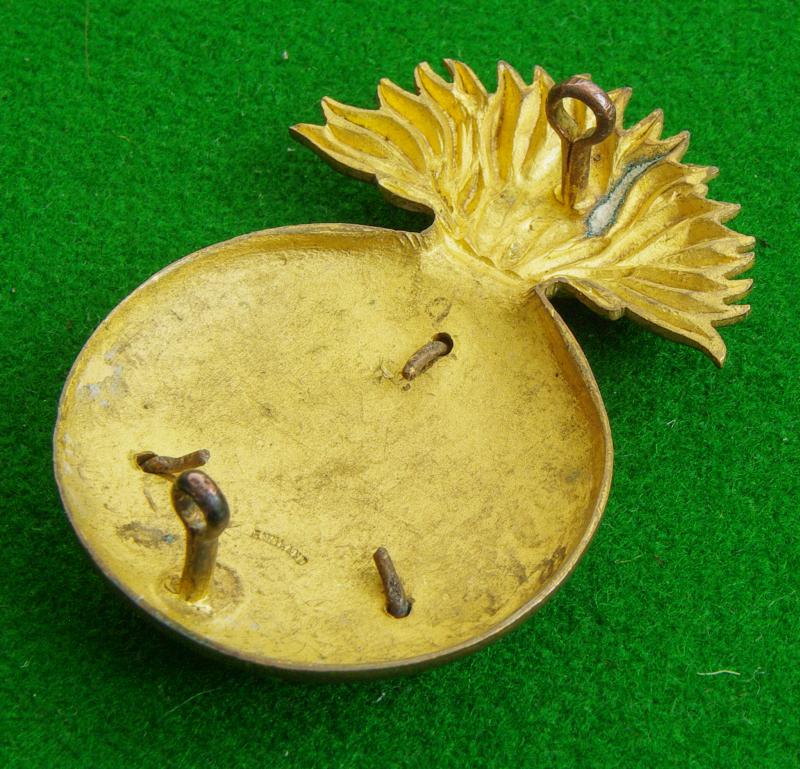 King's crown officers? silver and gilt glengarry badge with two loops and stamped, "England" to the reverse. A bear to the centre of a crowned maple leaf and circlet bearing the title, "Edmonton Fusiliers " the motto scroll and small tablet, " 9th.C.E.F." mounted upon the ball of a fused grenade.
