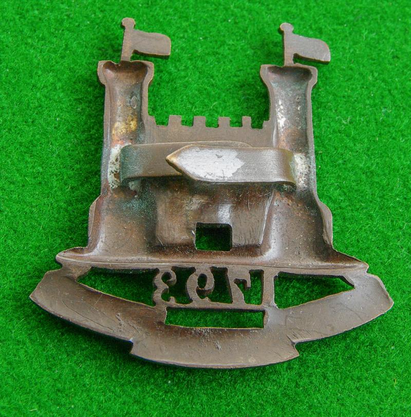 Scarce officers bronze service dress cap badge with two blades to the reverse. The Castle of Bury St. Edmunds above the date, "1793" and the tri-part title scroll, "Loyal Suffolk Hussars"
