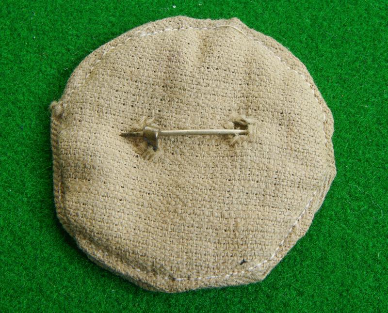 Very scarce printed example of the black silhouette of the head of a Madrassi Sapper within a black circle on a grey backing with original brooch pin fitting to the reverse.
